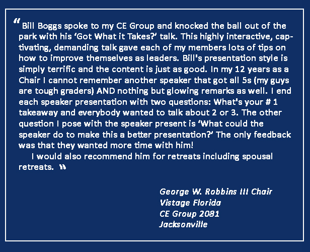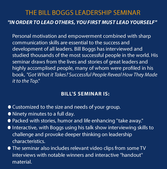 Endorsement of Bill's GOT WHAT IT TAKES? leadership seminar
